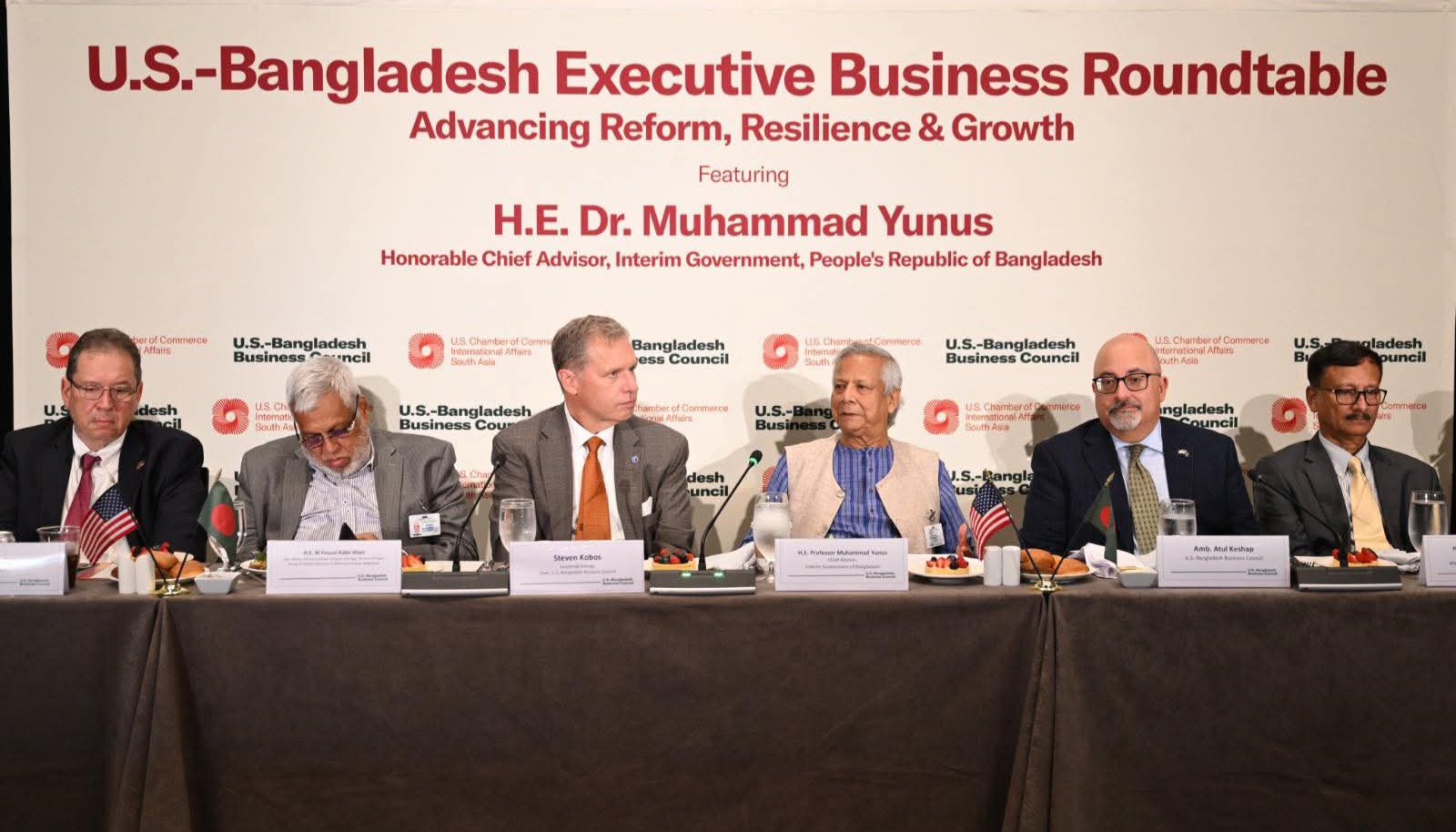 শীর্ষক ইউএস-বাংলাদেশ এক্সিকিউটিভ বিজনেস রাউন্ডটেবিল-এ যোগদান করেছেন। এই আয়োজনটি বুধবার (২৪ সেপ্টেম্বর) নিউইয়র্কের একটি হোটেলে ইউএস-বাংলাদেশ বিজনেস কাউন্সিল (USBBC) দ্বারা আয়োজিত হয়।