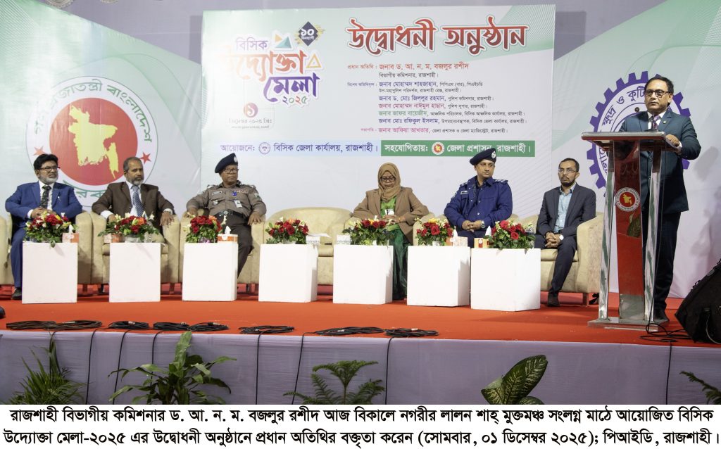 সোমবার (০১ ডিসেম্বর) বিকালে রাজশাহী লালন শাহ্ মুক্তমঞ্চ সংলগ্ন মাঠে আয়োজিত বিসিক উদ্যোক্তা মেলা ২০২৫ এর উদ্বোধনী অনুষ্ঠানে প্রধান অতিথির বক্তৃতায় তিনি এসব কথা বলেন।