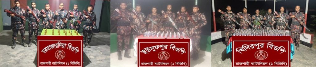 মহাপরিচালক মহোদয় এর নির্দেশনা অনুযায়ী মাদকের বিরুদ্ধে ‘‘জিরো টলারেন্স’’ নীতি অনুসরণ করে রাজশাহী ব্যাটালিয়ন (১ বিজিবি) এর সদস্যগণ সীমান্ত এলাকায় মাদক বিরোধী অভিযান পরিচালনা করে যাচ্ছে। এরই ধারাবাহিকতায় বিজিবি’র আভিযানিক দল গোপন তথ্যের ভিত্তিতে জানতে পারে যে, রাজশাহীর বিভিন্ন সীমান্ত দিয়ে বিপুল পরিমান ভারতীয় মাদকদ্রব্য পাচার হবে।