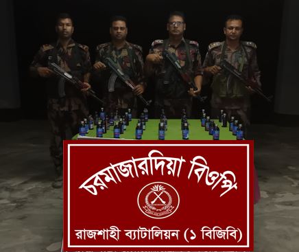 এছাড়াও অদ্য ১৬ মার্চ ২০২৬ তারিখ আনুমানিক ০০৪০ ঘটিকায় চারঘাট বিওপি’র আভিযানিক দল গোপন তথ্যের ভিত্তিতে চারঘাট থানাধীন থানাপাড়া আমবাগান নামক এলাকায় বিশেষ অভিযান পরিচালনার উদ্দেশ্যে ওৎ পেতে থাকে। ওৎ পেতে থাকার এক পর্যায়ে বিজিবি’র আভিযানিক দল আমবাগানের ভিতরে লোকজনের আনাগোনা শুনতে পেয়ে সুকৌশলে অগ্রসর হলে মাদক ব্যবসায়ীরা বিজিবি’র উপস্থিতি টের পেয়ে তাদের নিকট থাকা একটি প্লাস্টিকের বস্তা ফেলে পালিয়ে যায়। পরবর্তীতে বিজিবি’র আভিযানিক দল উক্ত প্লাস্টিকের বস্তাটি তল্লাশী করে *৬০ বোতল ভারতীয় মদ* (মালিকবিহীন) জব্দ করতে সক্ষম হয়। জব্দকৃত মাদকদ্রব্য চারঘাট থানায় জমা দেওয়ার কার্যক্রম প্রক্রিয়াধীন।
