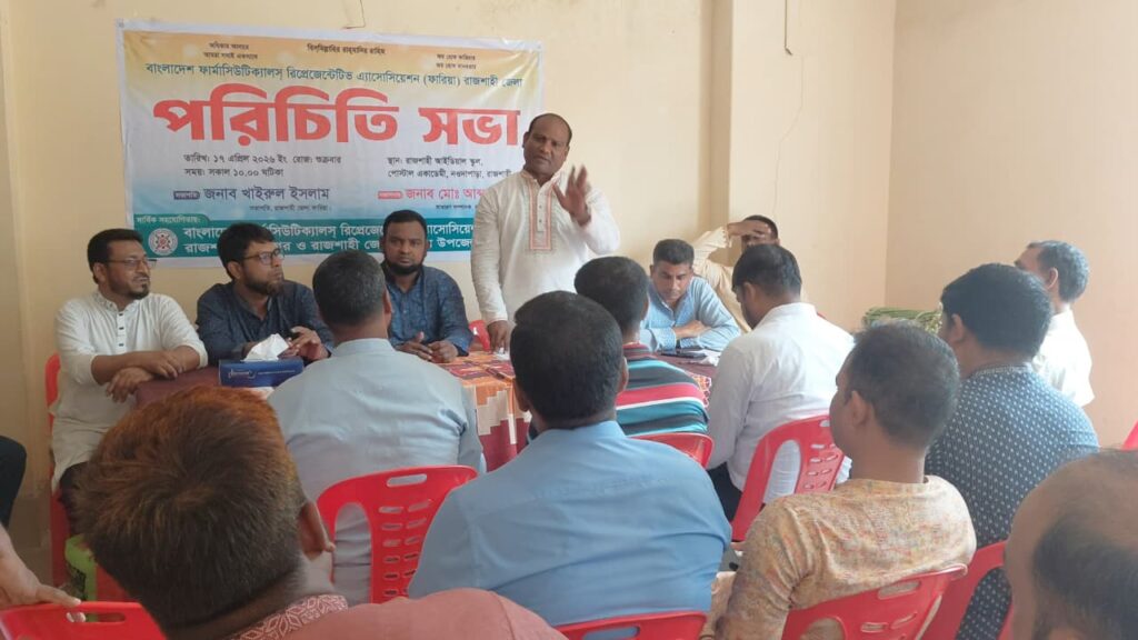 বাংলাদেশ ফার্মাসিউটিক্যালস রিপ্রেজেন্টেটিভ অ্যাসোসিয়েশন “ফারিয়া” রাজশাহী জেলা কমিটির পরিচিতি সভা অনুষ্ঠিত হয়েছে।