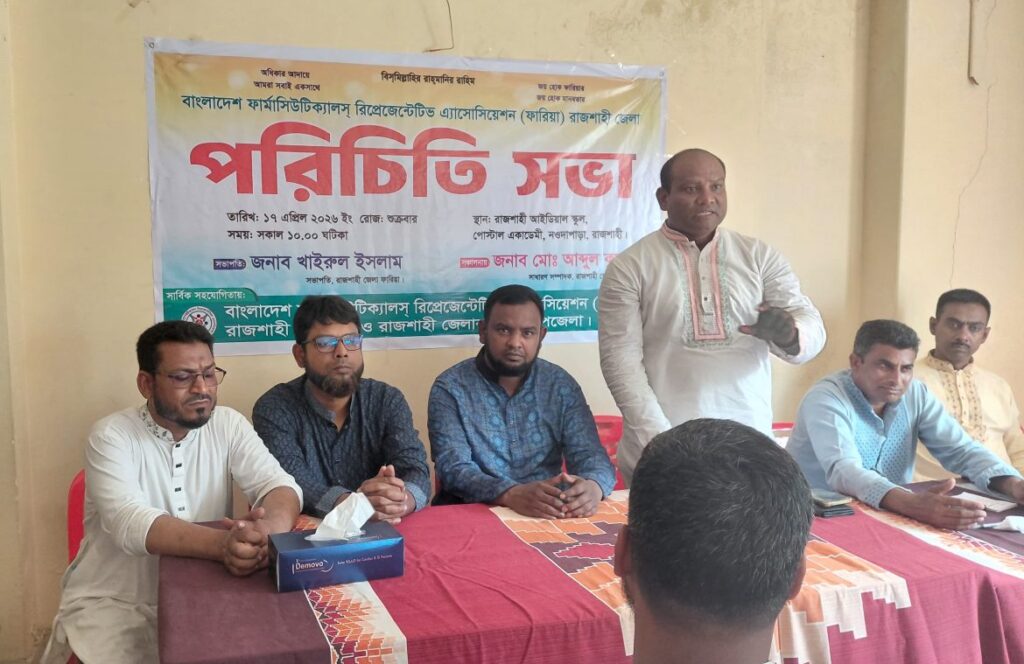 বাংলাদেশ ফার্মাসিউটিক্যালস রিপ্রেজেন্টেটিভ অ্যাসোসিয়েশন “ফারিয়া” রাজশাহী জেলা কমিটির পরিচিতি সভা অনুষ্ঠিত হয়েছে।